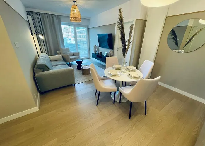 1-slaapkamer Polanki Aqua Sun Appartement is binnen een autorit van 10 minuten van het Stefan Żeromski Park gelegen en bevat een verwarmd zwembad met een sauna. De Vuurtoren van Kolobrzeg is gesitueerd op 25 minuten lopen van dit appartement van 60 m^2.